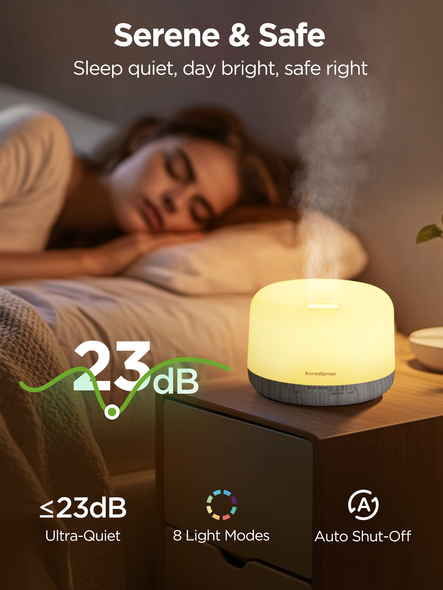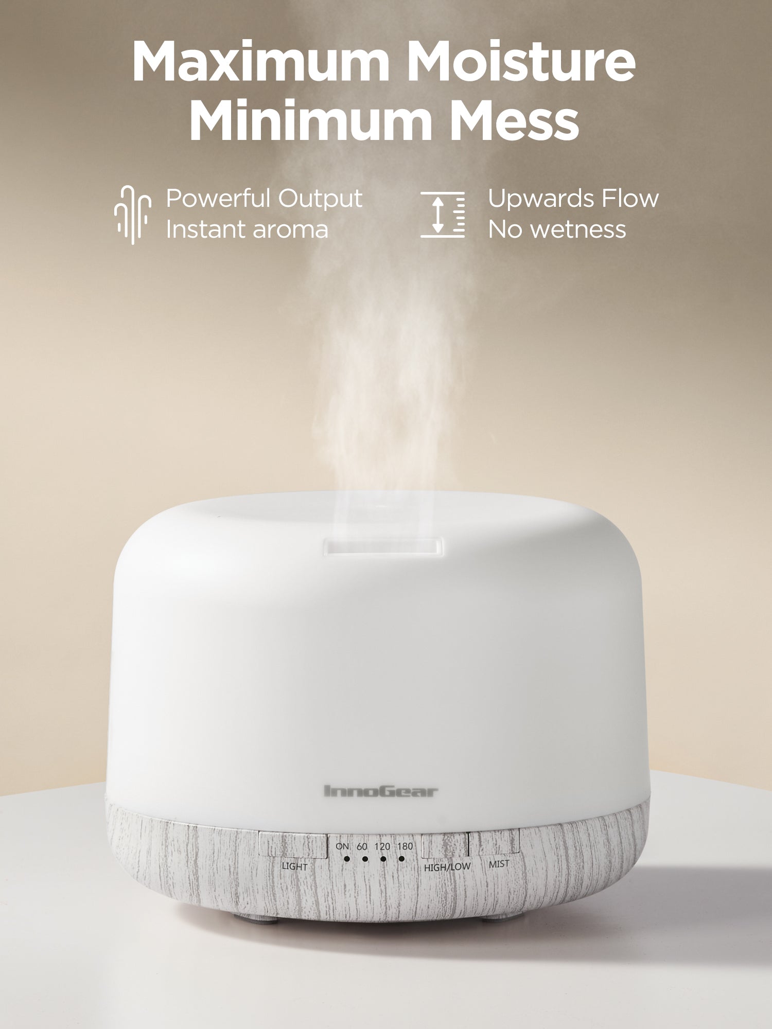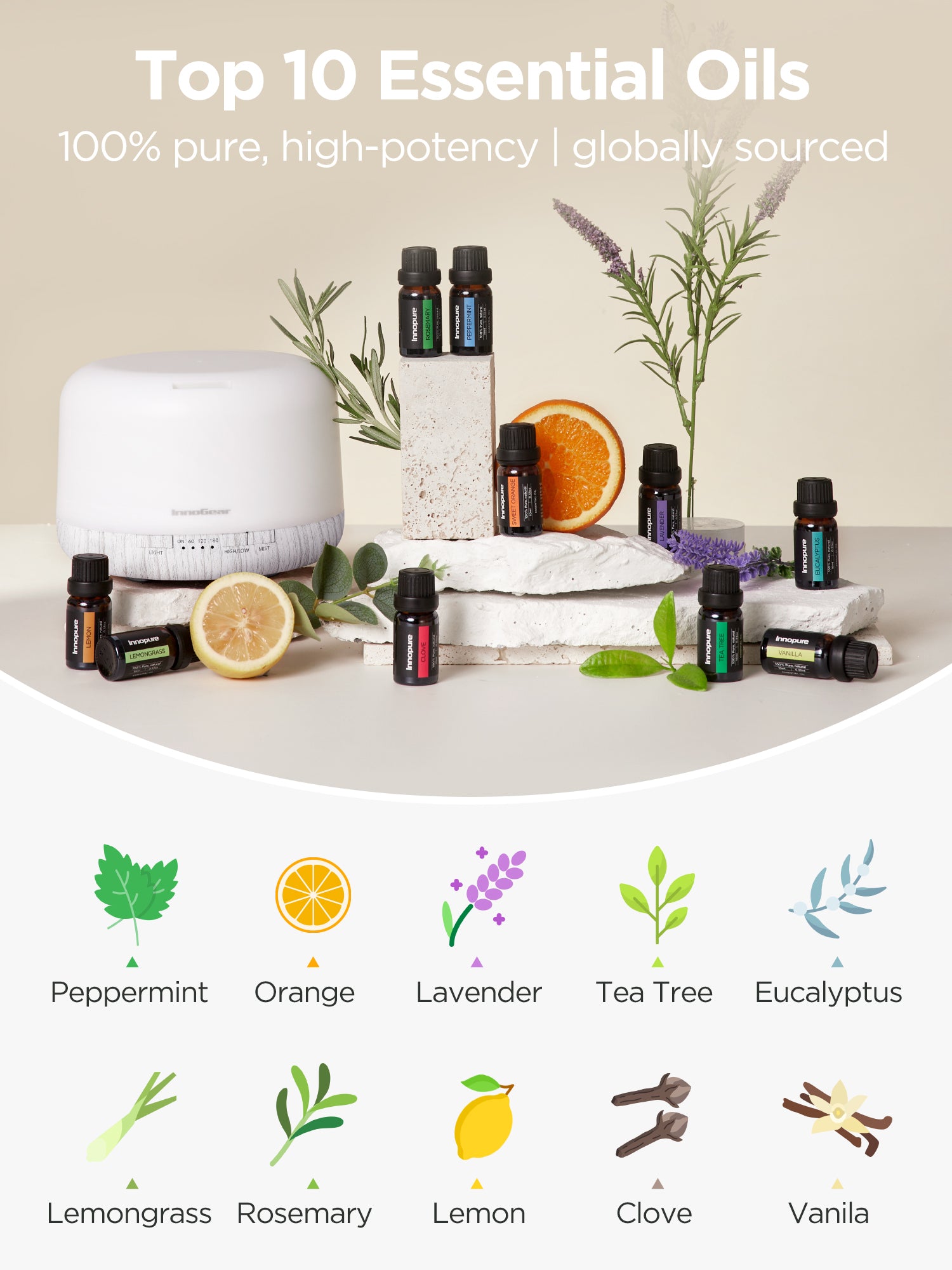 InnoGear Aromatherapy Diffuser & 10 Essential Oils Set, 500ml Essential Oil Diffuser with Remote Control Ultrasonic Cool Mist Scent Humidifier Vaporizer Auto-Off Timer for Room Office Home, White