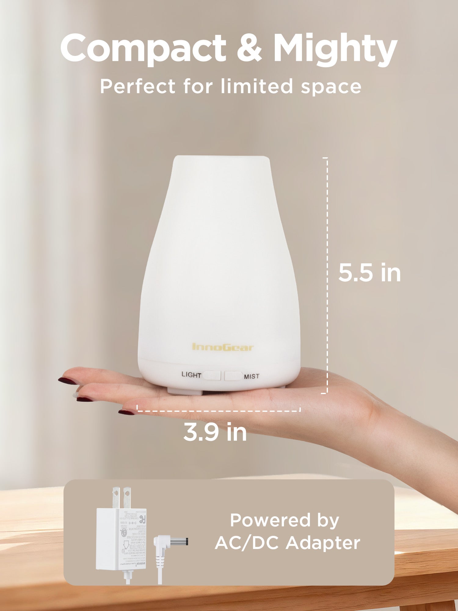InnoGear Essential Oil Diffuser, Ultrasonic Diffusers for Home Aromatherapy Humidifier for Bedroom Room 7 Colors LED 2 Mist Mode Auto Off, Basic White